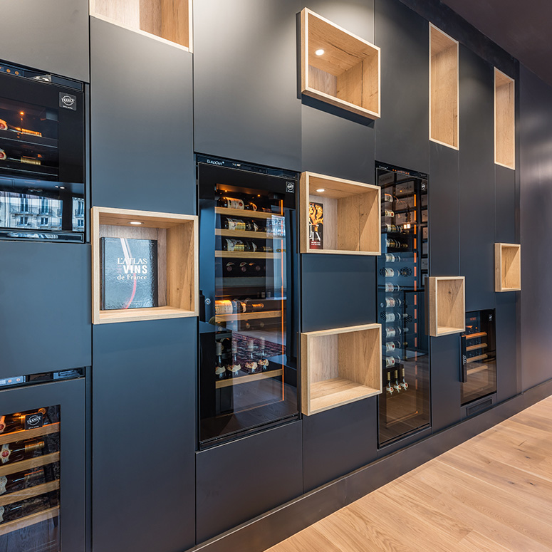 Découvrez au sein de notre showroom nos différentes solutions de conservation et de service du vin pour les particuliers et les professionnels : caves à vin petites et grandes capacités, solutions de rangement modulables, climatiseurs de pièce dédiée au vin ainsi que nos bars à vin et distributeurs de vin.